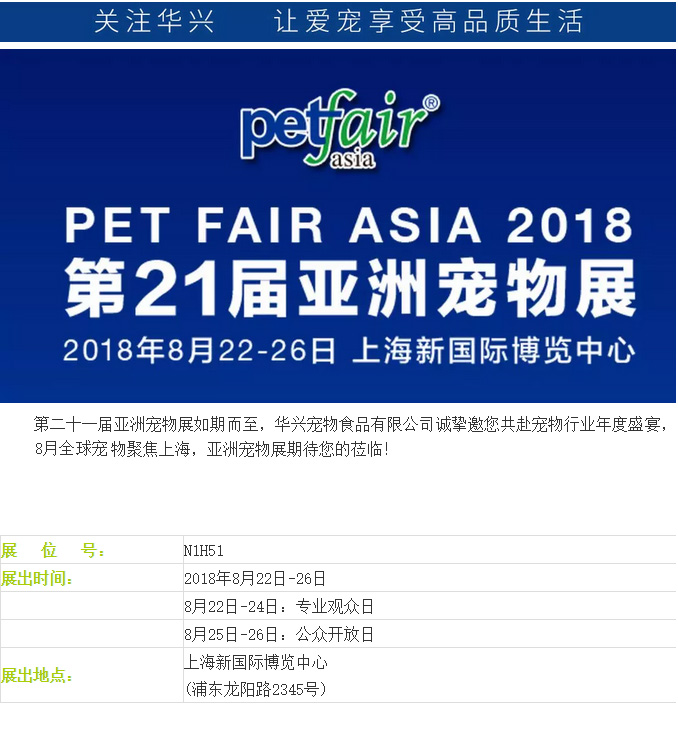 华兴宠物食品有限公司诚挚邀您共赴宠物行业年度盛宴-第二十一届亚洲宠物展